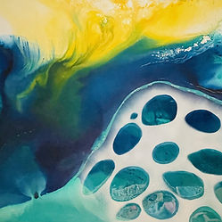 “Delicate balance”, explores the intricate relationship between the marine ecosystem and connections we share as humans. Colours and forms represent the diverse marine species that thrive beneath the surface, reflecting the beauty and fragility of the barrier reef. A testament to its rich biodiversity and the cultural significance it holds for coastal communities.